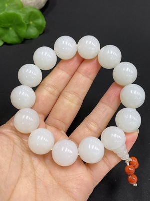 H08348171 Hetian Jade Bead Necklace, Approx. 16mm, Total Weight 85.3g
