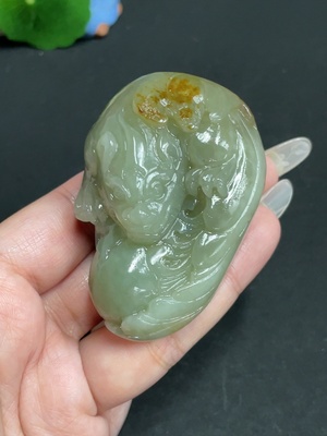 H27163415 Hetian Jade Handheld Piece, Auspicious Beast, Undetermined Skin Color Origin, Total Weight Approximately 129.8g