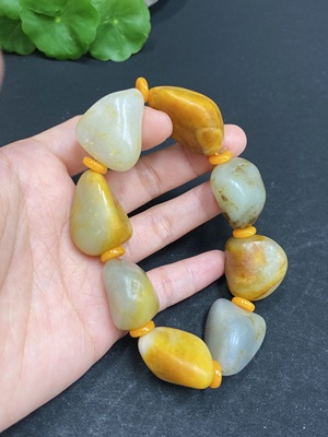 H33903280 Hetian Jade Bracelet, Undetermined Skin Color Origin, Non-Hetian Jade Beads Included, Total Weight Approximately 100g