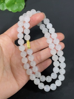 H37411300 Hetian Jade Bead Necklace, Approx. 7.8mm, Non-Gold, Total Weight Approx. 46.9g