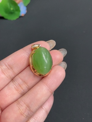 H38529774 Hetian Jade Jasper Inlaid Pendant, 18k Gold, Total Weight Approximately 5.2g