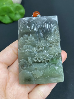 H27084825 Hetian Jade Pendant Landscape Plaque Total Weight (including rope) 96.4g