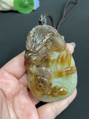 H37351096 Hetian Jade Pendant Dragon Total Weight [including rope] 113.9g
