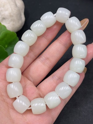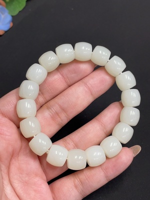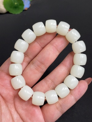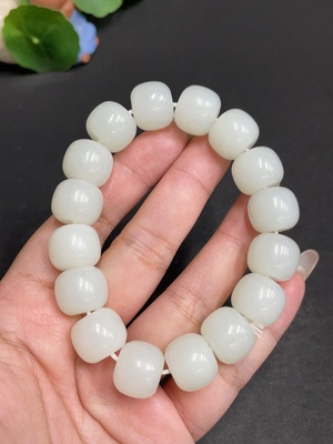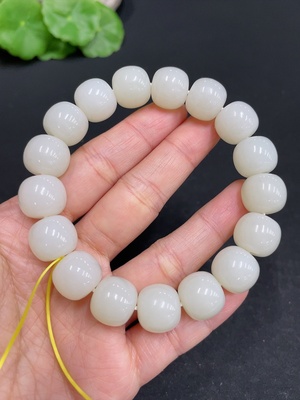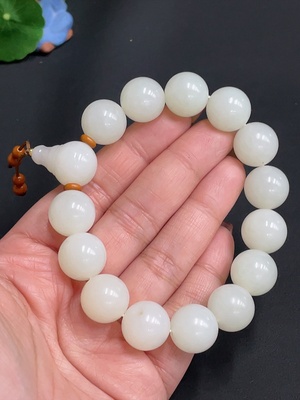 H25908590 Hetian Jade Bracelet, Approx. 14.4 mm Beads, Total Weight Approx. 73.4g, Undetermined Skin Color Origin, Non-Hetian Jade Beads Included