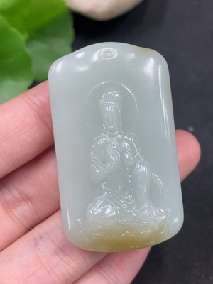 H36226296 Hetian Jade Pendant Guanyin Total Weight About 37.9g