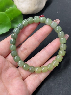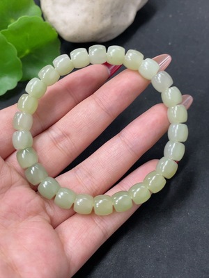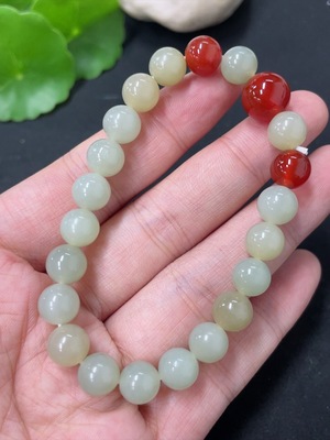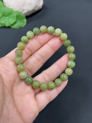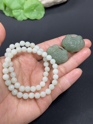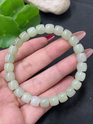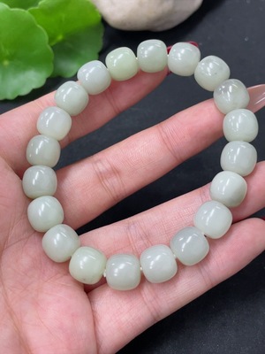 H37461490 Hetian Jade Bracelet, approx. 8mm beads, total weight approx. 17.9g, non-Hetian Jade accessory beads