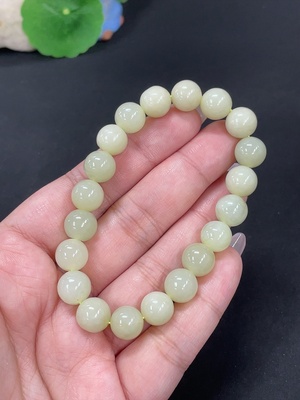 H38522541 Hetian Jade Bracelet, approx. 7.6mm beads, total weight about 21.8g