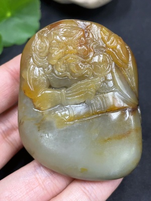 H36261047 Hetian Jade Seed Material Handheld Piece - Zhong Kui, Total Weight Approximately 109.1g, Undetermined Skin Color Cause