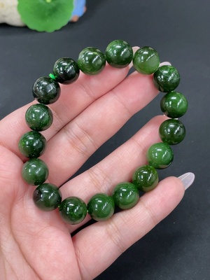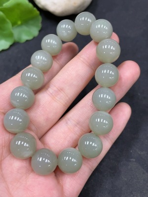 H37427162 Hetian Jade Bracelet, approx. 11.9mm beads, total weight approx. 35.2g, undetermined color origin, contains other mineral components