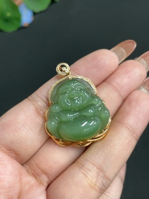 H35201435 Hetian Jade Jasper Inlaid Pendant - Buddha with Diamond Accents, 18K, Total Weight Approximately 12.3g