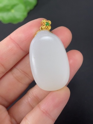 H37412333 Hetian Jade Pendant, Plain Pendant with 18k Gold Clasp, Total Weight Approx. 14.2g