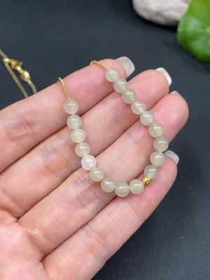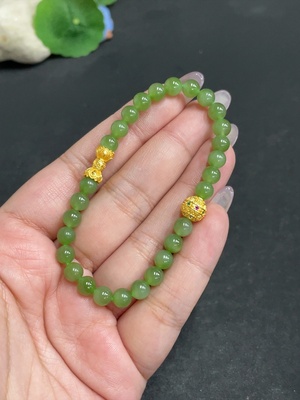 H18994566 Hetian Jade Bracelet, Approx. 5.8mm, Total Weight Approx. 9.3g, Beads Not Hetian Jade, Gold Beads 99% Gold Content