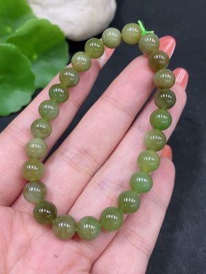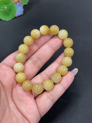 H35099914 Yellow Dragon Jade Bracelet, Approx. 8.1 mm Beads, Total Weight Approx. 17.4g