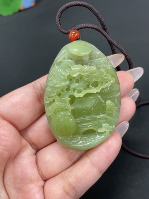 H38531048 Hetian Jade Pendant Landscape with Non-Hetian Jade Beads Total Weight Approx. (Including Cord) 69.2g
