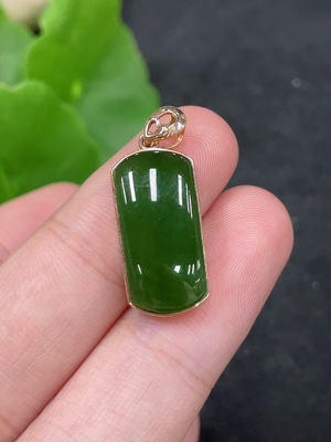H36316713 Hetian Jade Jasper Inlaid Pendant, Plain Pendant with 18k Gold Clasp, Main Body Gold Content 71%, Total Weight Approx. 2.8g
