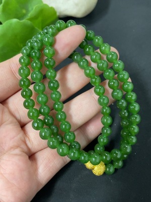 H37436985 Hetian Jade Jasper Bead Necklace, Approx. 6.2mm, Total Weight Approx. 36g, Non-Hetian Jade Beads, Non-Gold