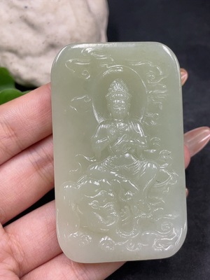 H32797091 Hetian Jade Pendant Samantabhadra Bodhisattva Total Weight Approx. 85.3g