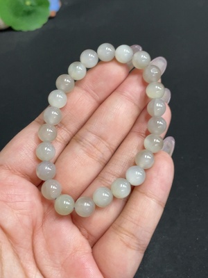 H34972666 Hetian Jade Bracelet, Approx. 7.6 mm Beads, Total Weight Approx. 16.7g