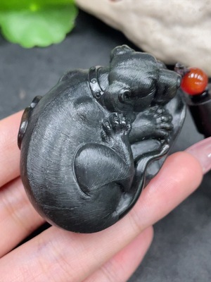 H33945060 Hetian Jade Handheld Carving "Prosperity" (Color origin undetermined) Collectible Certificate Total weight (including rope) approx. 76.8g