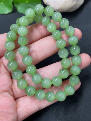 H37466281 Hetian Jade Bead Necklace, Approx. 7.6mm, Total Weight Approx. 33.6g