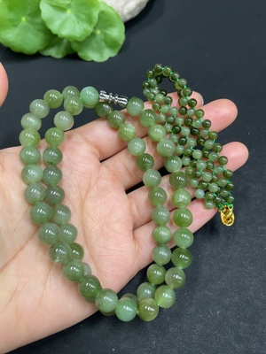 H34055339 Hetian Jade Bead Necklace, Approx. 7.8 mm, Total Weight Approx. 45.2g, Non-Hetian Jade Matching Beads