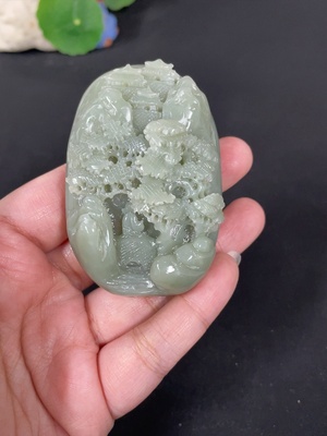 H37388433 Hetian Jade Handheld Carving - Landscape, Total Weight Approx. 121g