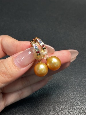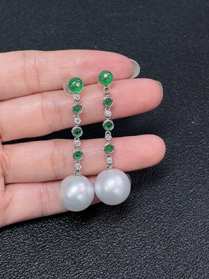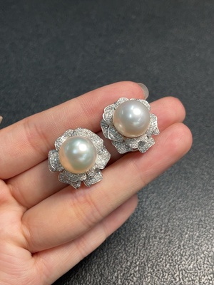 C34065767 18k seawater pearl earrings with undetermined color origin, total weight approximately 8.33g, size about 11.5mm