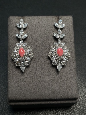C38487188 Conch Pearl Earrings Unmarked Gold Content Au72% with Diamonds (Round Diamonds Only) Total Weight Approx. 12.91g GIA Certificate: Conch Pearl Flamingo Pink Flame Pattern