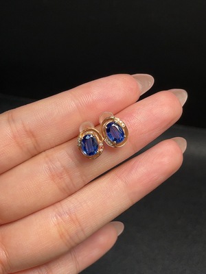 C33870370 18K Gold Blue Spinel Earrings with Diamond Accents, Non-Diamond Quantity Exceeds 1 Piece, Total Product Weight Approximately 2.08g