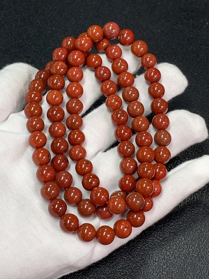 C38484428 Red Agate Bead Strand with Visible Organic Matter, Total Weight Approx. 70.02g, Size About 8.8mm