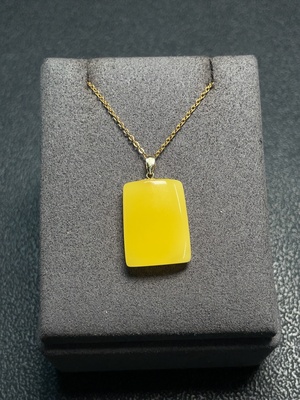 C35096065 Amber Beeswax Pendant Necklace Non-Gold Chain 18K Gold Pendant Total Weight Approx. 2.56g Including Chain