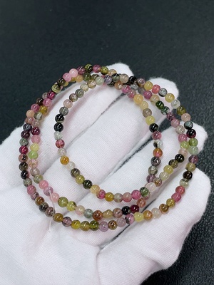 C38499217 Tourmaline bead strand with other mineral components and visible organic matter, total weight approx. 10.67g, size approx. 3.5mm