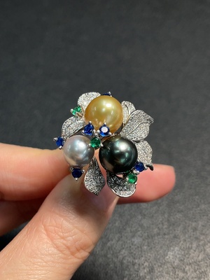 C37456251 Seawater pearl ring, color origin undetermined, adjustable, non-gold, total weight approximately 9.80g, size about 7.7-9.6mm
