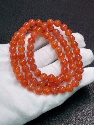 C37447458 Red Agate Bead Strand with Visible Organic Matter, Total Weight Approximately 27.48g, Size About 5.7mm