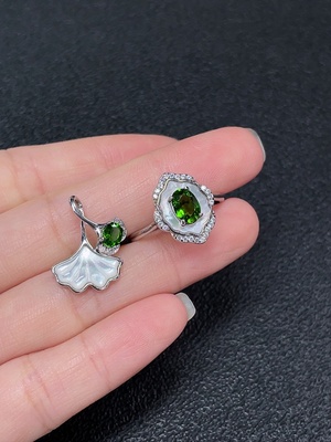 C36272312 Diopside Ring + Pendant with Non-Natural Accent Stones, Non-Gold, Adjustable, Total Weight Approx. 3.8g, Sell as a Lot