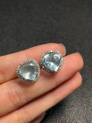 C36274270 Aquamarine Earrings with Diamond Accents, Non-Gold, Total Weight Approximately 4.47g