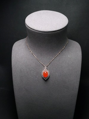 C35199761 Red Agate Pendant with 18K Gold Chain, Non-Gold and Non-Diamond Parts, Total Weight Approximately 4.64g