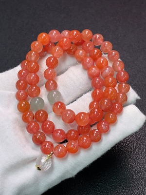 C35119949 Red Agate Bead Strand with Visible Organic Matter, Non-Natural Accent Stones Considered, Non-Metal, Total Weight Approximately 45.4g, Size About 8.2mm
