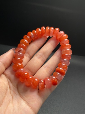C29340156 Red Agate Bracelet with Visible Organic Inclusions, Total Weight Approx. 65.61g, Bead Size 13.4mm