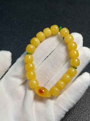 C38528965 Amber Beeswax Beaded Bracelet, Carved Piece Coated with Colorless Film, Non-Natural Stones Considered, Total Weight Approx. 9.13g, Size About 8.9mm