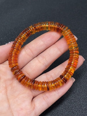 C34007058 Amber beeswax bracelet, total weight about 9.64g, size approx. 8.1mm