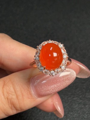C30512013 South Red Agate Inlaid Ring, Non-Gold Setting, Adjustable Size, Total Weight Approx. 4.33g