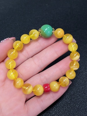 C38499158 Amber Beeswax Bracelet, Total Weight Approx. 11.06g, Size About 10.4mm
