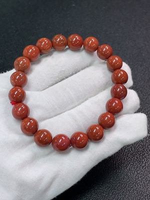 C39555339 Red Agate Bracelet with Visible Organic Matter, Total Weight Approximately 24.17g, Bead Size About 8.8mm