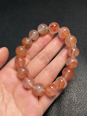 C39596524 Red Agate Bracelet with Visible Organic Matter, Total Weight Approx. 37.16g, Size About 11.2mm