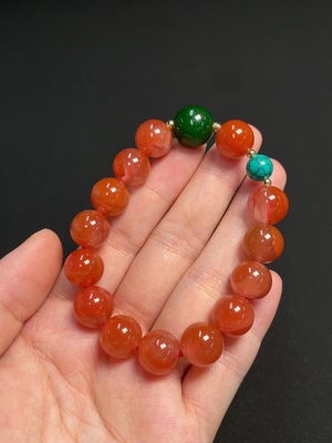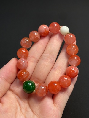 C37361422 Red Agate Bracelet with 18K Gold, Partial Color Uncertainty, Visible Organic Matter, Possible Non-Natural Accent Stones, Total Weight Approx. 20g, Size ~8.3mm