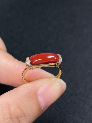 C34006533 18K Red Agate Ring, Total Weight Approx. 2.62g, Size 15, Stone 13.8*4.2mm