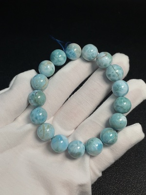 C36301509 Larimar bracelet with visible organic matter, total weight approximately 45.13g, bead size about 12mm