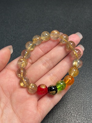 C33889004 Crystal Bracelet with Visible Organic Matter, Total Weight Approx. 12.83g, Bead Size 7.3mm