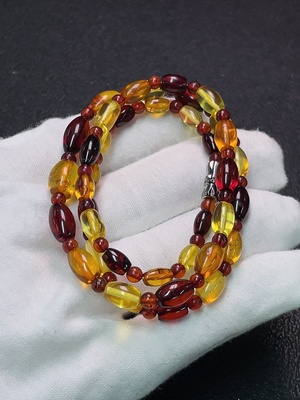 C31658001 Amber Beeswax Bracelet with Partial Repairs Visible, Total Weight Approx. 49.96g, Size About 19.5mm